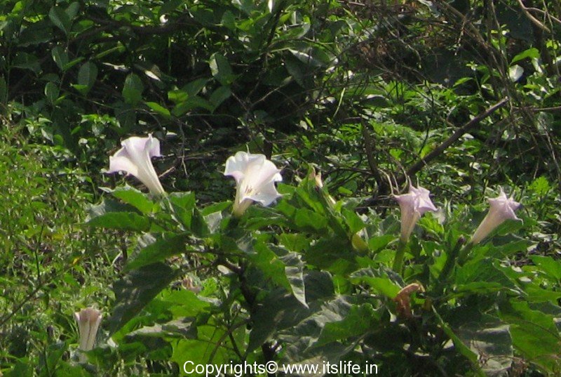 The other common names are Horn of Plenty, Downy Thorn Apple, Safed Dhatura (Hindi).
