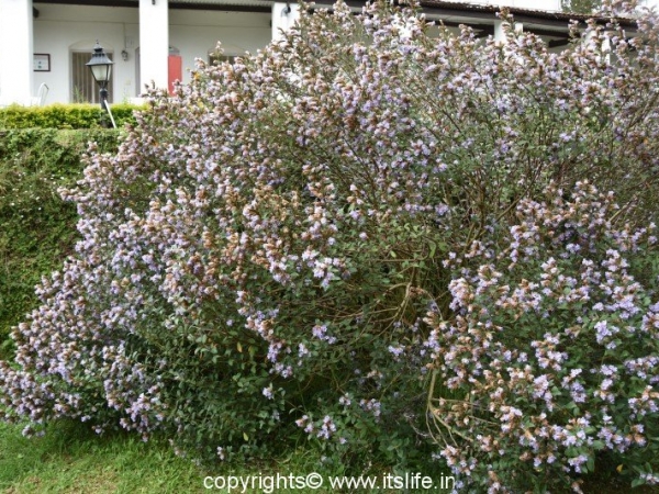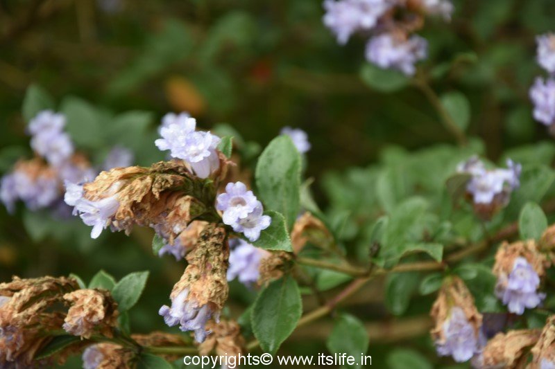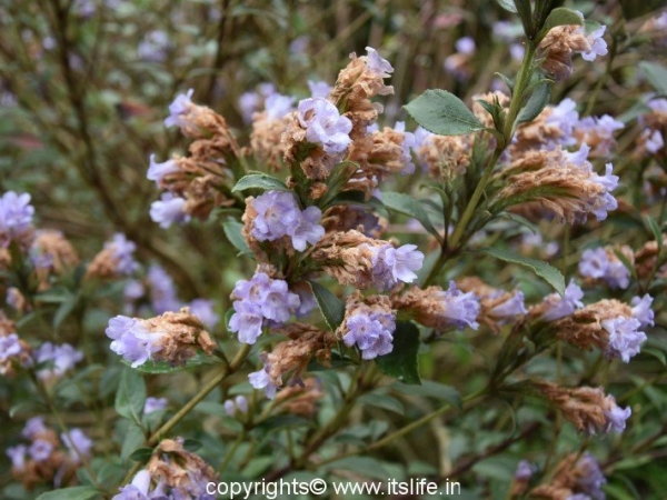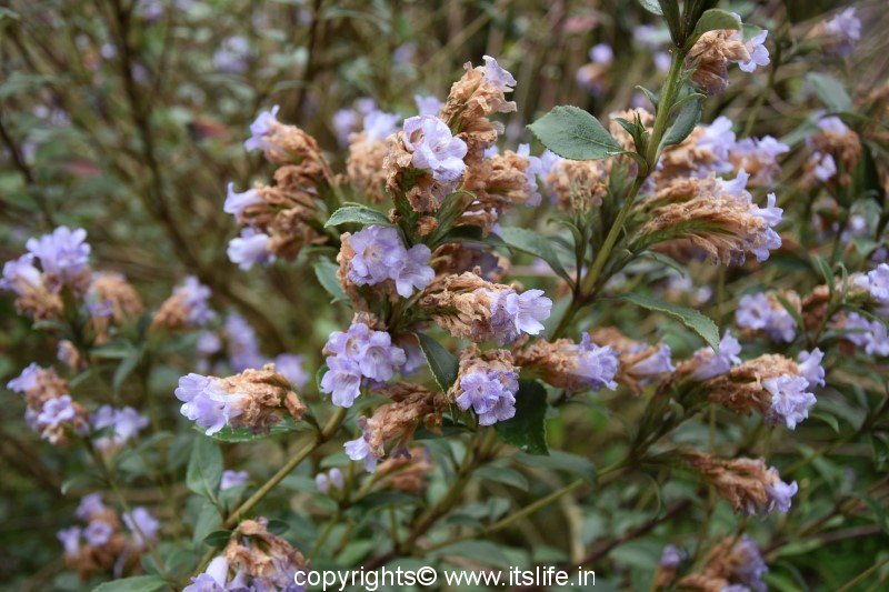 The shrub grows up to 6 to 12 feet at an altitude of 6,000 to 7,000 feet on the hill slopes of the Western Ghats.