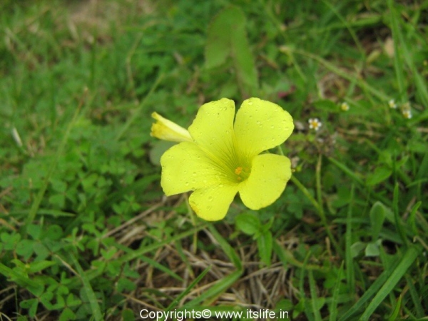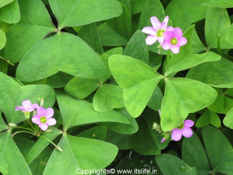 Some of the species are named after the color of their flowers like yellow-sorrel, pink-sorrel, and so on. Other common name is sour grass as the leaves are acidic to taste. In Hindi it is known as Amrul, Khatmitti, in Tamil it is known as Paliakiri, in Kannada it is Puli soppu.
