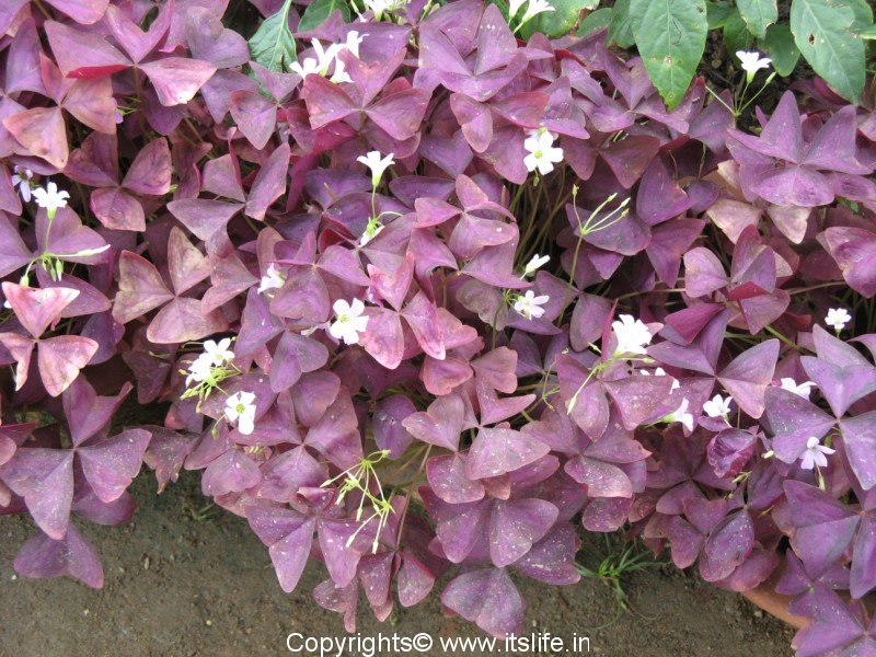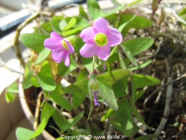 Oxalis plant is perennial but blooms annually. The leaves are usually divided into 3 and if the heat is more, the leaves droop down only to spread like a palm the next day.