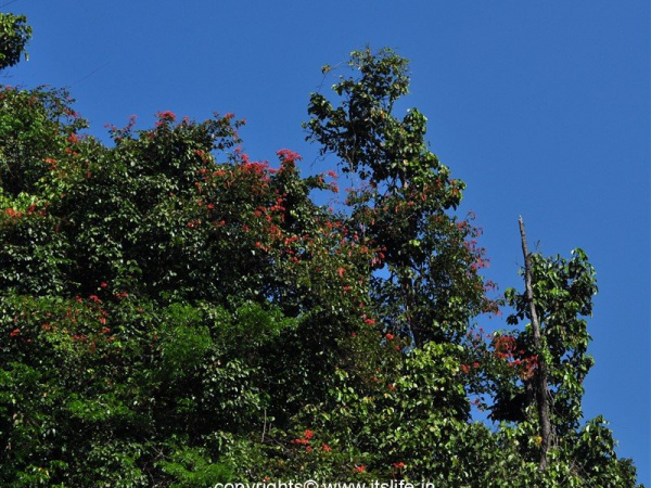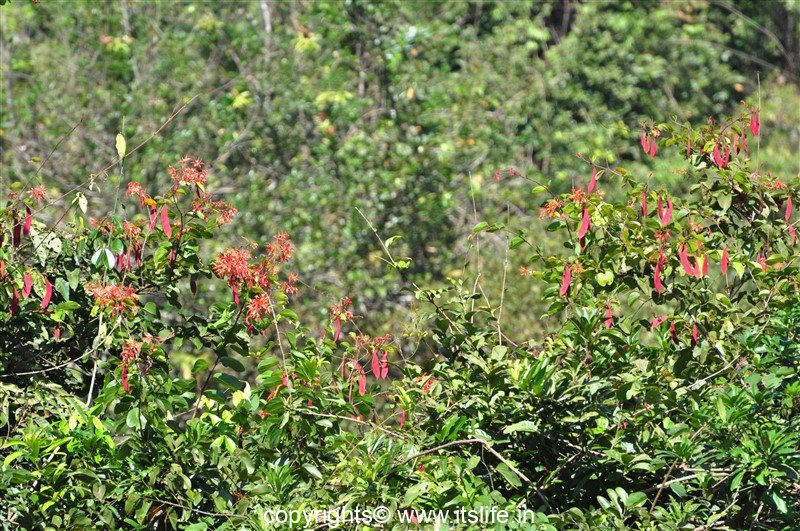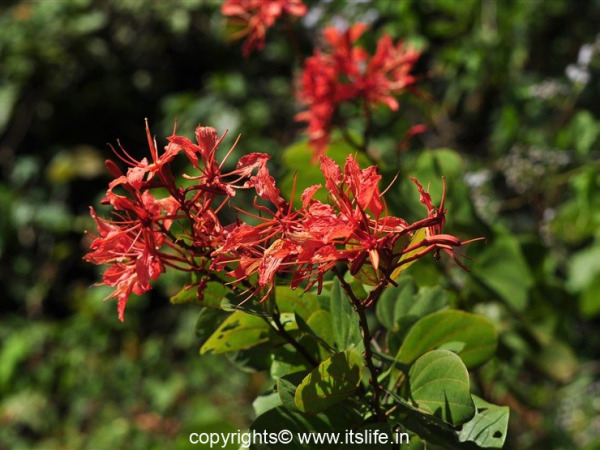 Scarlet Bauhinia is large climbing shrub endemic to the Western Ghats. Since it is fast growing, it can be seen growing tall and in bloom using the trees as support. The shrub blooms during January to February.