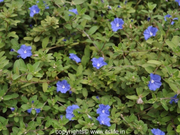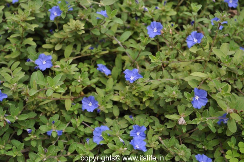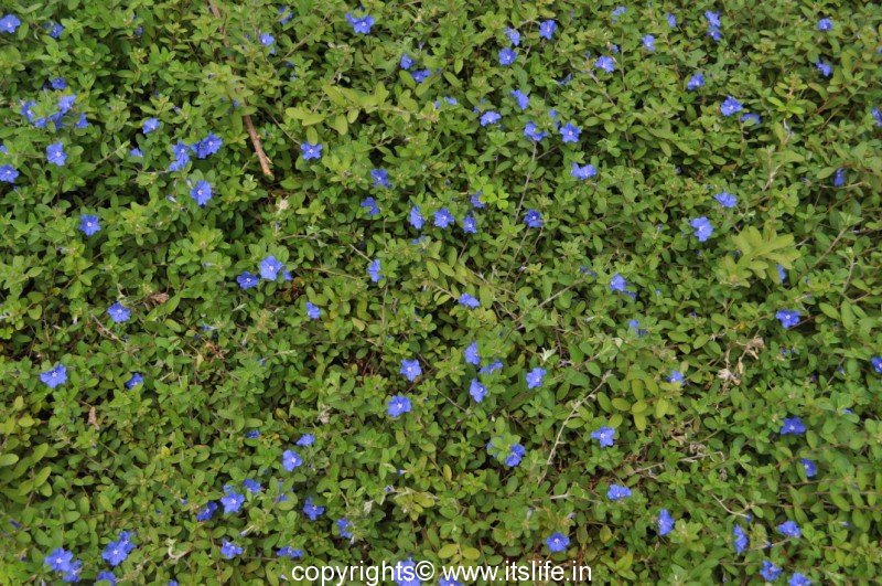 Evolvulus alsinoides is the botanical name of Vishnukranthi – Dwarf Morning Glory and it belongs to Convolvulaceae (Morning glory) family native to the South America. I have seen this plant grow in the wild in Karighatta, Marcona Hally Dam, and Western Ghats.
