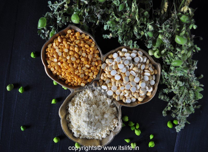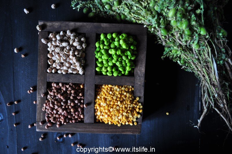 Chickpea also known as Kadale in Kannada, Channa in Hindi and other common names are Bengal Gram, Garbanzo Bean, and so on. When dry and split, the peas are yellow and are known as Kadlebele or Channa Dal in Kannada and Hindi respectively. There are many different types of Chickpeas available like Dry Green peas, Dark Brown peas, Kabuli Channa etc.