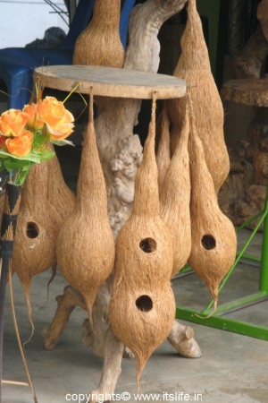 Tree trunk is carved into a canoe. Fiber from the fruit is made into ropes, foot rugs, and cloth. Fancy and useful articles are made using parts of the Coconut tree.