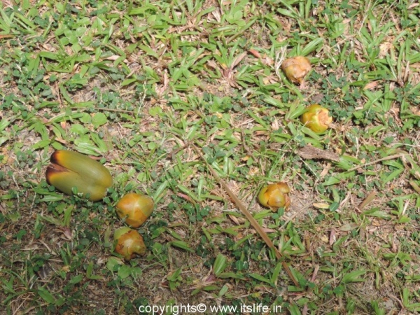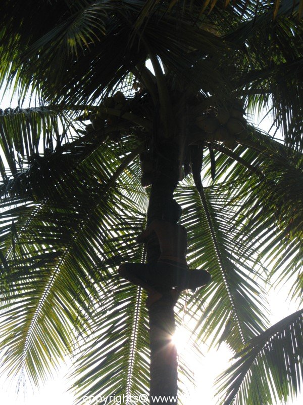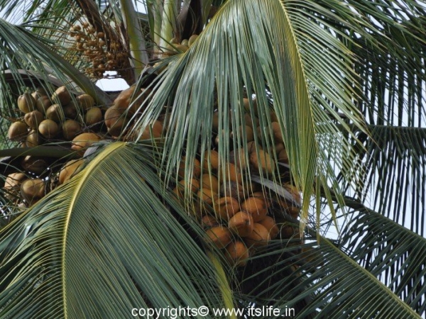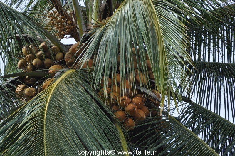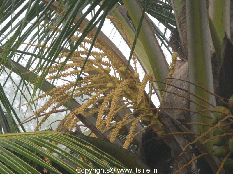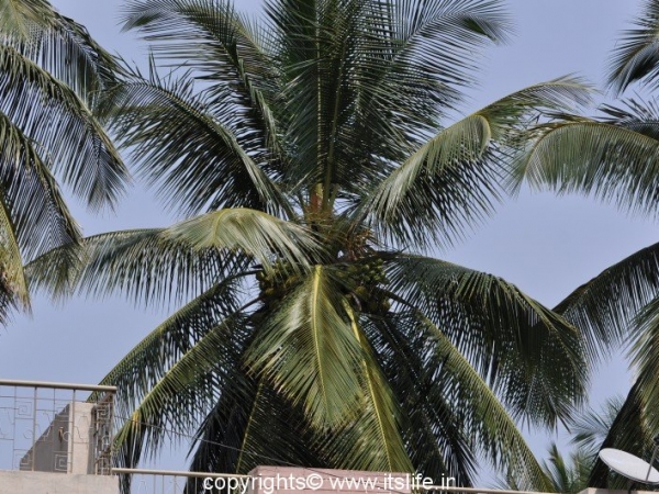 Called as Nariyal in Hindi, Tenginakayi in Kannada, and the botanical name is Cocos nucifera. It belongs to Arecaceae (Palm family). In Sanskrit it is popularly known as Kalpa Vriksha, which means that it is a tree that provides everything for a living. The following South Seas saying sums up the tree: “He who plants a coconut tree plants food and drink, vessels and clothing, a home for himself and a heritage for his children.” Nativity of this plant is still under disagreement. It could be India, New Zealand or South East Asia. Coconut Palm tree is state tree of Kerala.