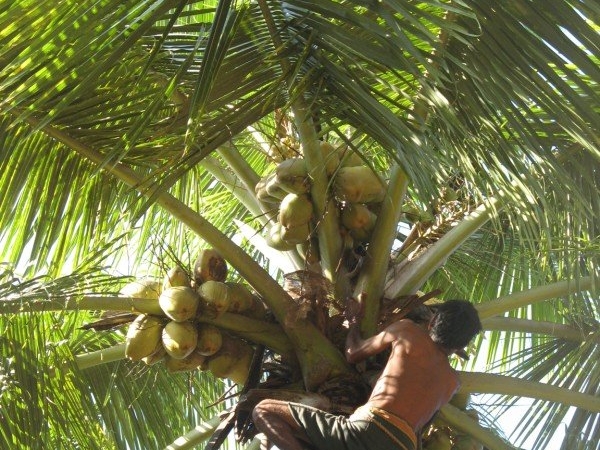 Coconut fruit has the following three layers: the exocarp, mesocarp, and endocarp. The exocarp and mesocarp is the husk of the coconut. Harvesting from the tree is an art well practiced in countries that grow Coconuts.