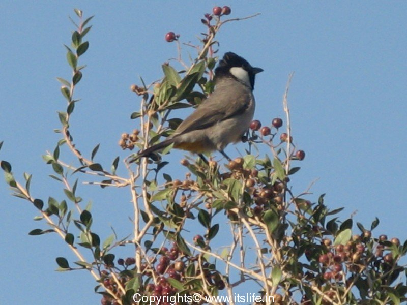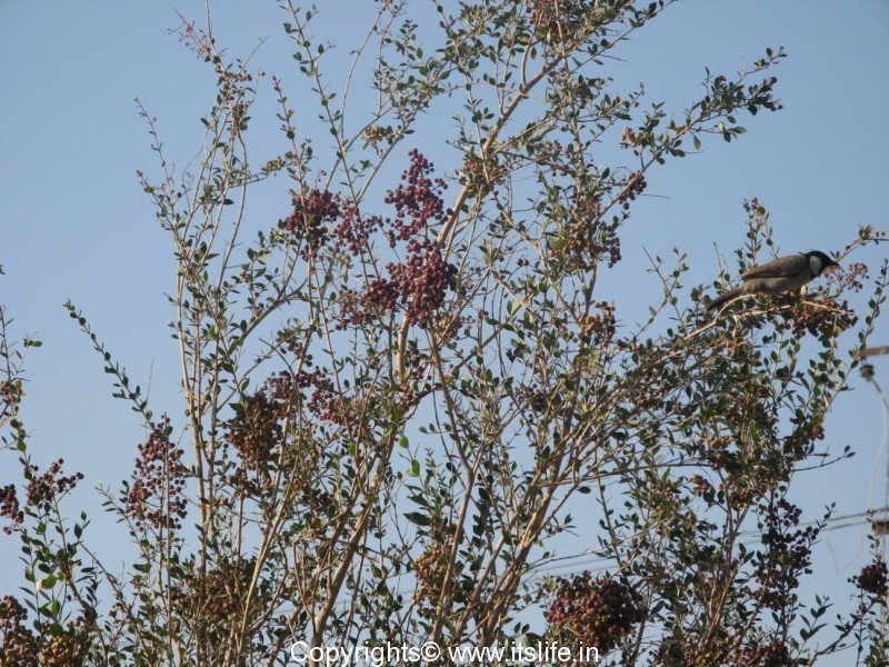 Picture above – White Cheeked Bulbul on a Henna tree with fruits, pictured at one of the highway dhaba between Bikaner and Jaisalmer