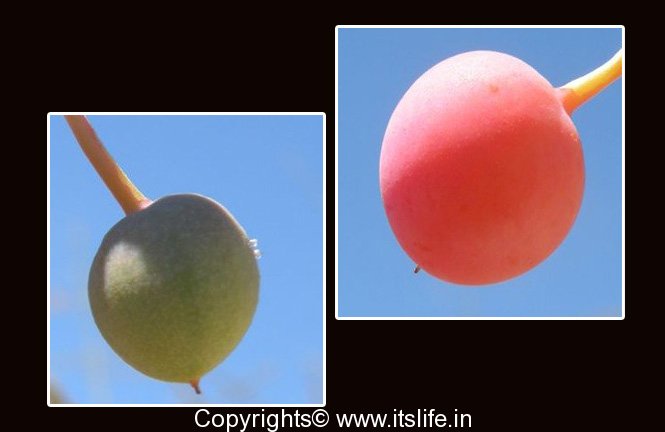 The fruit of this tree is consumed by the people of Rajasthan. The fruit, which is green when raw, is sour to taste, which is pickled. The ripe fruit is round and pink, is used in many dishes in this region. The ripe fruit is dried, which turns black and then used in various side dishes like Ker Sangri and also used in pickles. Birds are attracted to the fruit of this plant.
