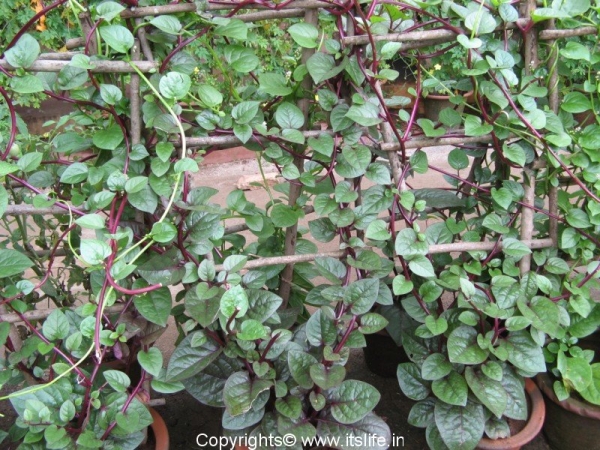 Malabar Spinach is also known as Ceylon spinach, Buffalo spinach, Indian spinach, Red vine spinach, Vine spinach. In Kannada it is known as Basale Soppu, in Sanskrit it is known as Upodika, and in Hindi it is known as Poi.