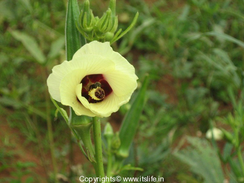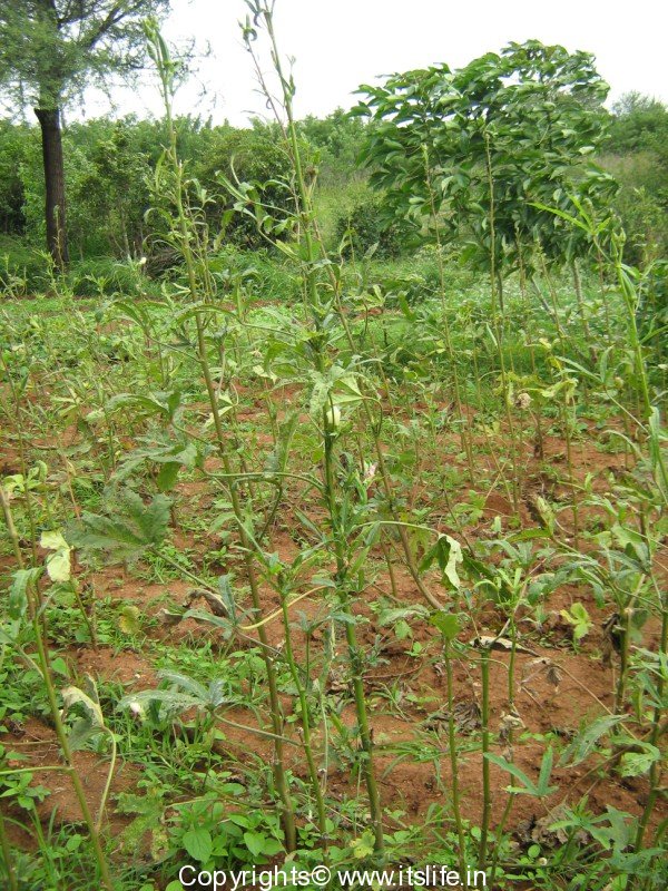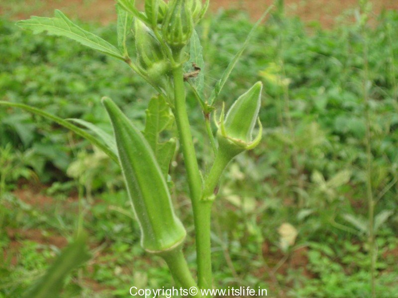 Okra is grown by sowing seeds in well drained soils. It can also be grown in pots. Seeds are soaked overnight and then planted. Germination takes place in 6 days.