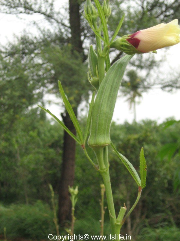 Also known as Okra, Bhindi (Hindi), Bhendekayi (Kannada) is a very popular vegetable in India. It is grown all over the country and used to cook a variety of dishes. The botanical name is Abelmoschus esculentum and belongs to Malvaceae family.