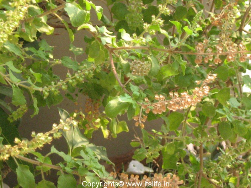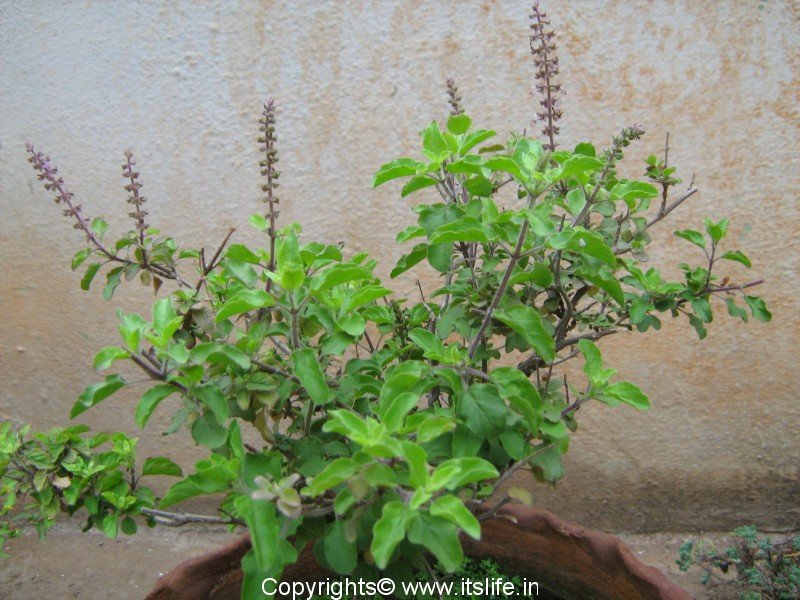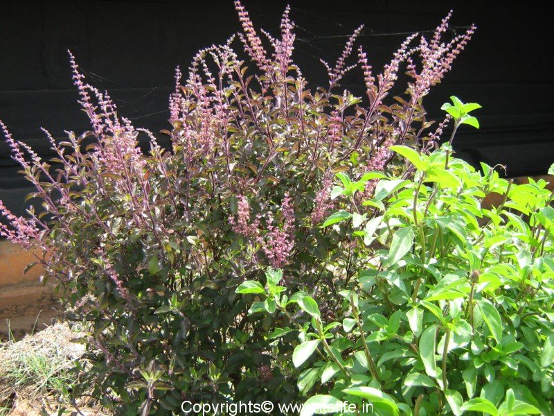 “Tulasi” the queen of herbs is also known as Holy Basil. Tulasi is planted in every Hindu household in a special container or a simple pot and worshipped daily. Some of them plant more than one Tulasi plant, which is called as Tulasi Vana / Tulasi forest. The plant belongs to the family Lamiaceae and the botanical name is Ocimum tenuiflorum or Ocimum Sanctum.