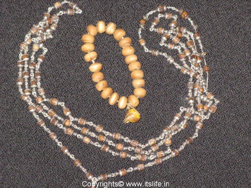 Japa malas / rosary beads made from Tulasi stems or roots are considered sacred. These beads are also worn as a necklace as it is considered auspicious for the wearer.