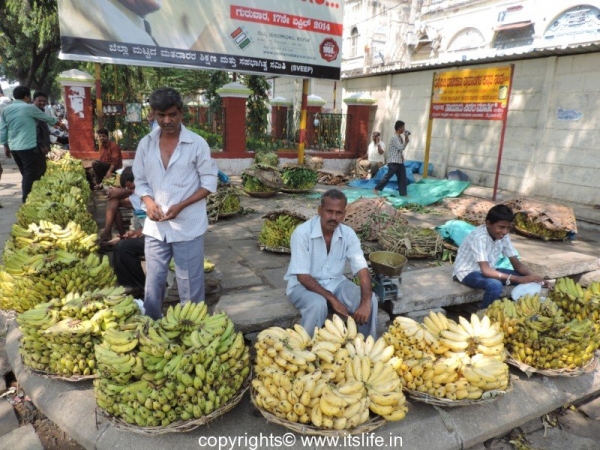 Large number of hawkers sit near Lansdowne building in Mysore and sell different varieties of Banana since ages.