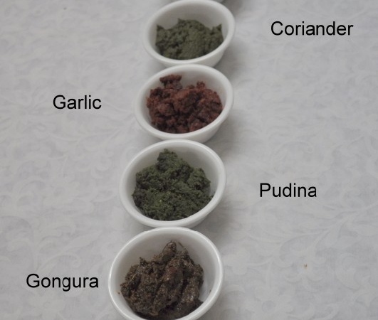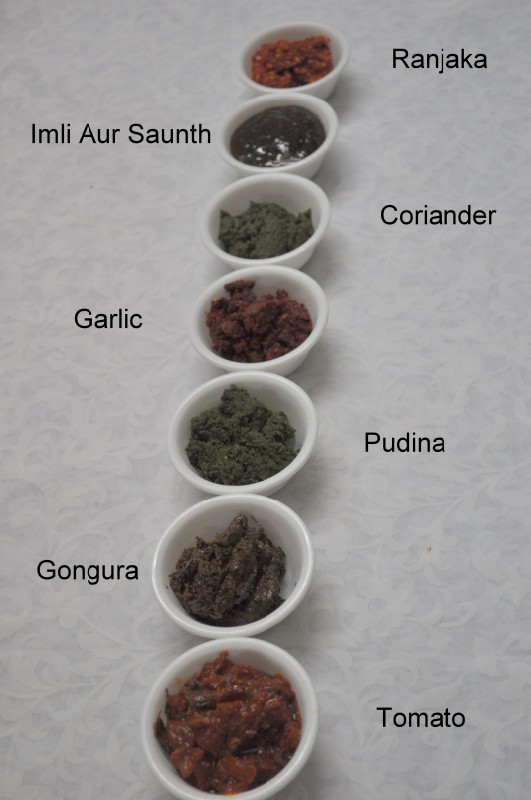 Chutney Rainbow November 17, 2014 by Shantha Leave a Comment Chutney Rainbow comprises of the following recipes: Ranjaka Imli Aur Saunth Chutney Coriander Chutney Garlic Chutney Pudina / Mint Chutney Gongura Thokku / Chutney Tomato Sweet Chutney 0 0 vote Article Rating Related Images:
