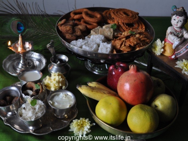 The children in the house are treated as Lord Krishna, they are dressed like Krishna and love in the form goodies are bestowed on them!
