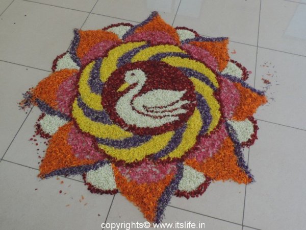 Wish you all a very happy Onam, readers. The houses in Kerala must be in a festive mood with Pookalam and Onam Sadya. The below Pookalam represents peace with the Swan symbol.