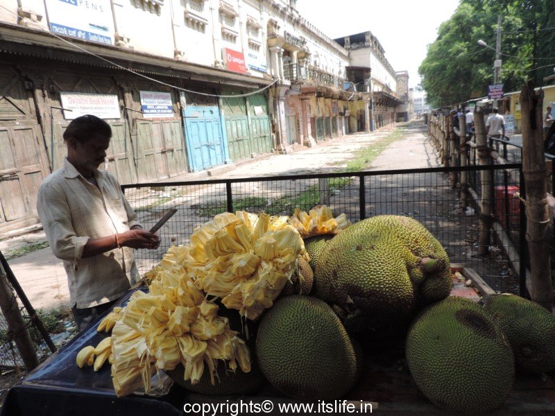 Jackfruit seller near Lansdowne building in Mysore continues to do business though the shops lining the building are shut down due to safety reasons. Life surely goes on!