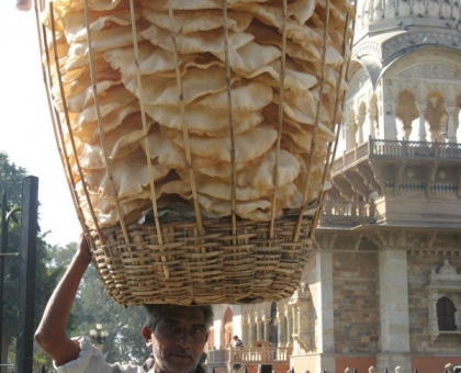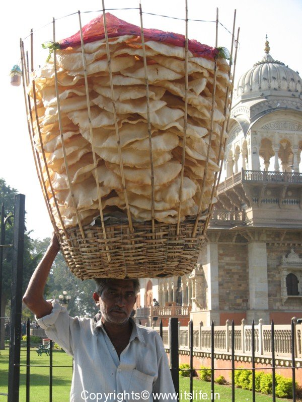 Papad on the head February 25, 2011 by Shantha 2 Comments Saw this guy selling deep fried Papads stacked neatly in a wick basket in front of Albert Hall Museum, Jaipur. 0 0 vote Article Rating Related Images: