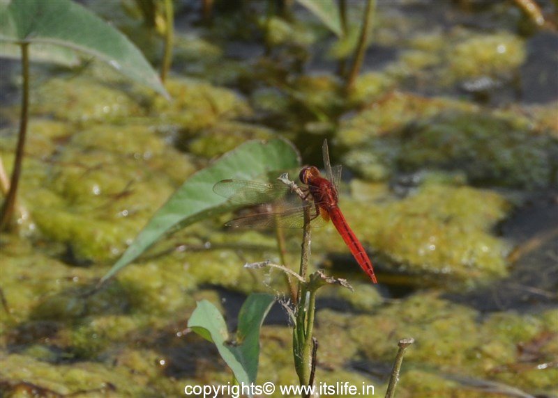 A beautiful Red Damselfly resting on a plant. A beauty to behold! Also, there is a lot to learn from this small insect, it sits still without moving for a very long time as though meditating.