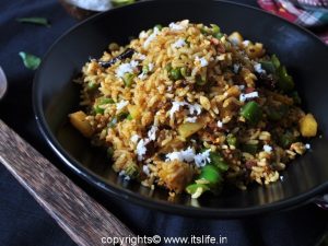 Alu Capsicum Peas Bhath is a rice dish prepared using Potatoes, Capsicum and Peas. This is ideal to pack for…