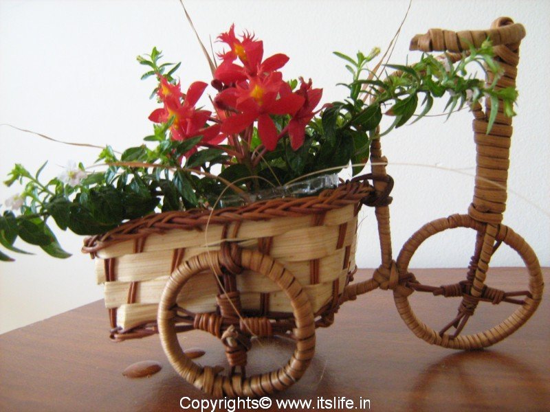 Flowers arranged in a small Cycle Cart. Materials Required for this Flower Arrangement: 1 Cycle Cart made of Bamboo or…