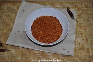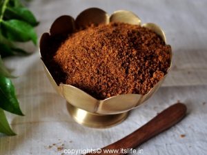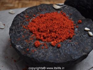 Coconut Garlic Chutney Powder is prepared in North Karnataka and Maharashtra and is served with Bhakri or Chapathi.