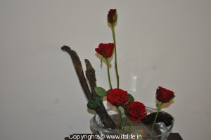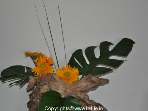 A driftwood is used in this flower arrangement, which gives the illusion of drifting on water. Wish you all drift…