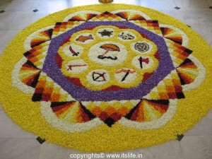 Pookalam (Flower Rangoli / Pattern), the art of designing floral carpets on the day of Onam festival in Kerala welcome…