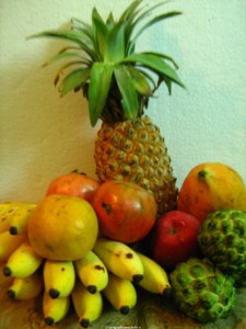 Materials Required for a Fruit Arrangement: Fruits like Pineapple, Apple, Pomegranate, Sweet Lime, A bunch of Banana etc., A Tray…