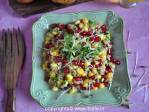 Vegetable Kosambari is colourful and healthy and tastes equally good.