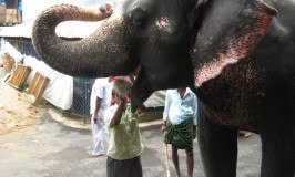 The temple elephant in Dharmasthala gets a Kayyi Thuththu / hand full of rice from its Mahout. … [Read more...]