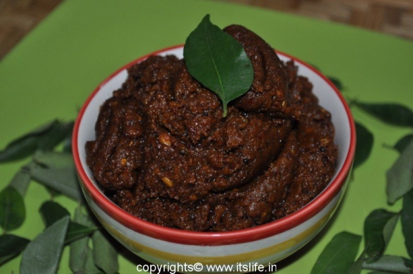Karibevina Chutney is prepared using Curry leaves. This can be stored for 15 days in the refrigerator.