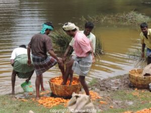 The carrots are washed with water using legs to remove the mud. They are washed again and loaded into sacks. …