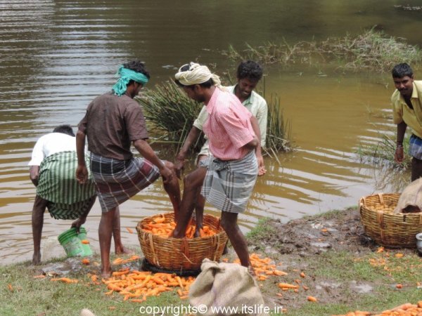 Washing Carrots in Kodaikanal