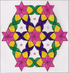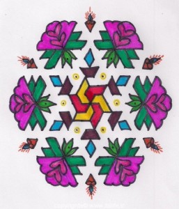 Swastik is an auspicious symbol in Hindu religion. Here is a Rangoli of Swastiks. Method: Dots 10 by 6 –…