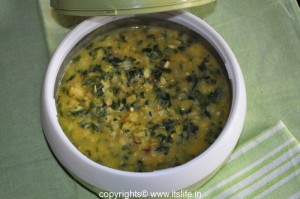 Dal Methi is a nutritious side dish prepared using Split Red Gram and Fenugreek leaves.