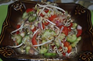 Bean Sprout Salad is a healthy edition to the dinner menu. This adds variety and boosts the health quotient.