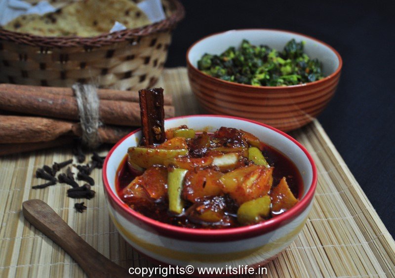 A sweet pickle prepared by Gujarathis using Raw Mangoes. The vessel containing the mixture is kept directly under the sunlight,…