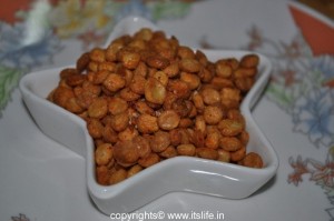 Masala Channa Dal is deep fried Bengal Gram tossed in spices.