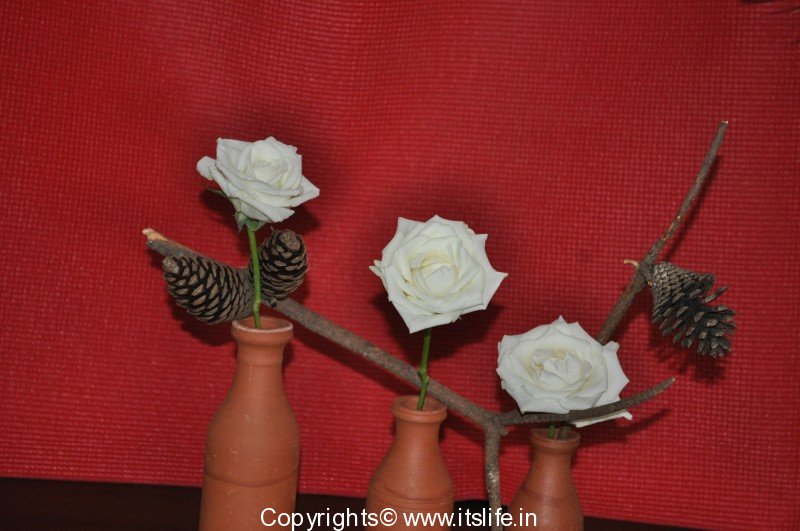 This is a multiple container flower arrangement. Ensure that each container is connected with the arranging material, for example, in…