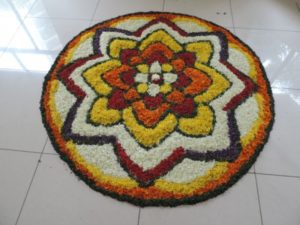 Tomorrow is Tiru Onam and the celebrations include Pookalam / floral carpets, rituals, and Onam Sadya (sumptuous vegetarian meal).