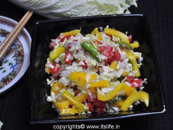 Oriental salad is prepared using Chinese Cabbage and other fresh ingredients. A very healthy salad, which is quick to make.
