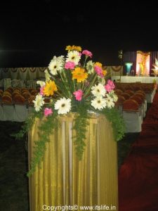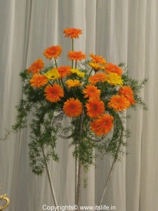 Pedestal flower arrangements look extremely elegant in large party halls.