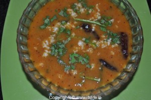 This is a South Indian Curry prepared using leafy vegetables and brown chik peas. It is also known as Sambar.…