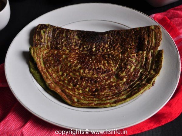 Palak Dosa – Spinach Pancakes Recipe – Spinach Crepe Recipe