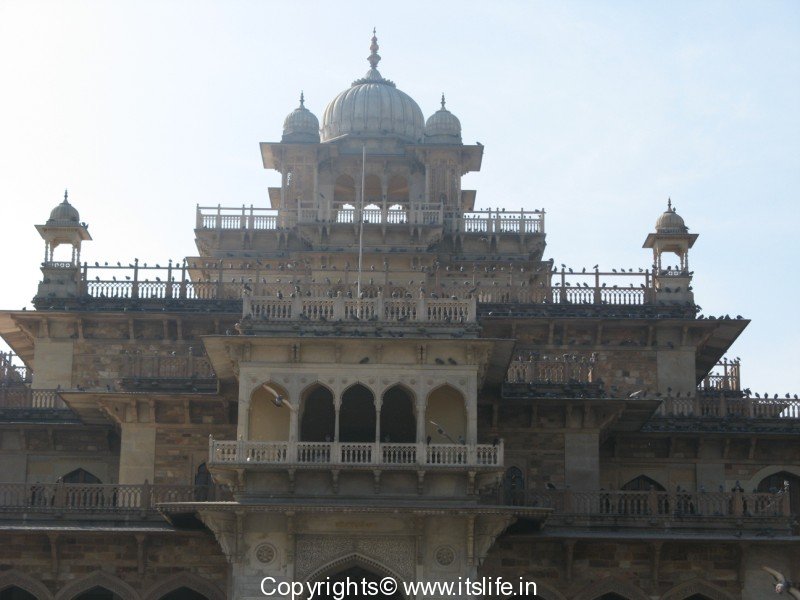 As we approached the Albert Hall Jaipur we were awe struck at the beauty of the building. I took photographs of the building from all angles. Hundreds of Pigeons on the building and in front of the building added charm to it.