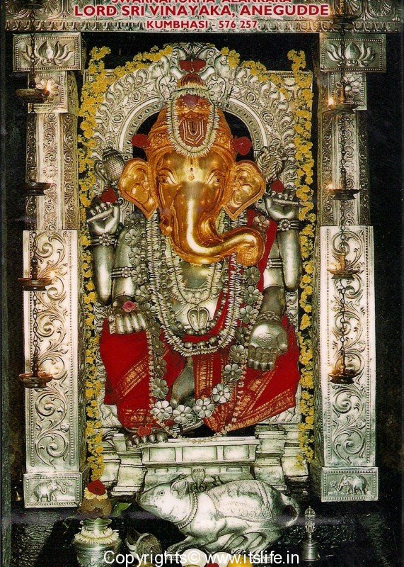 Anegudde Temple is situated in Kumbashi village near Kundapur, Karnataka is dedicated to Siddhi Vinayaka / Lord Ganesha. Kumbashi is also the birth place of Sri Vadirajaru.