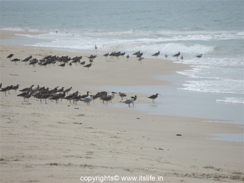 There were a number of water birds waiting on the beach for a bountiful of treats in the form of a wave.
