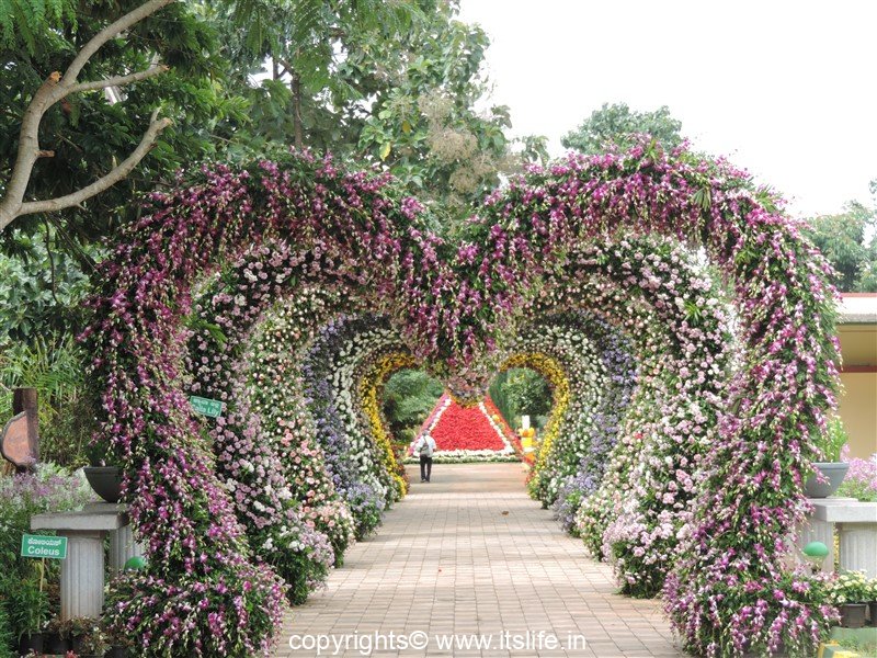 A series of pergolas are installed in the shape of heart filled with flowers like Orchids, Daisies, Roses making the visitors feel special as they walk under it.